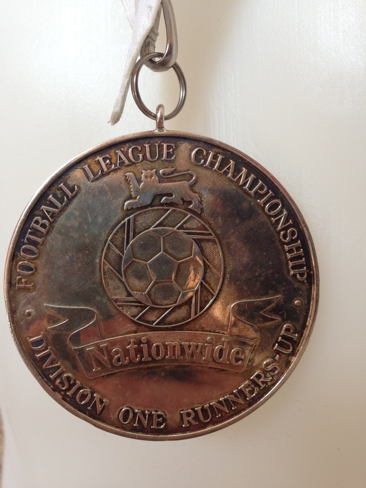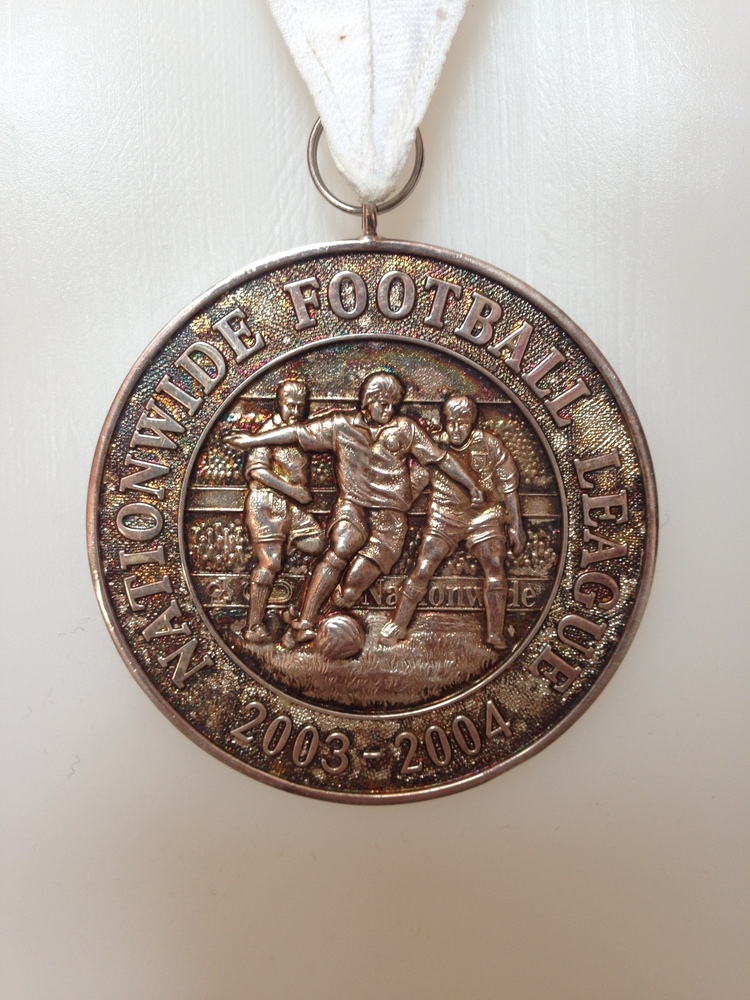 Players Medal presented on the pitch after clinching promotion to the Premier League 03 -04 season with Match Shirt