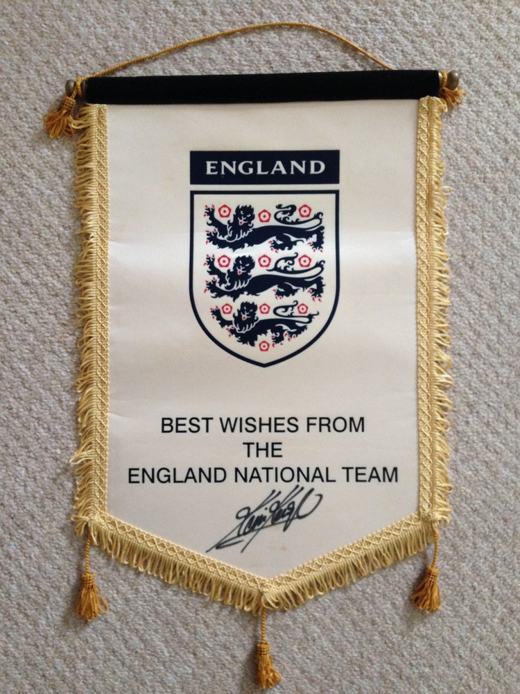 Very rare pennant given to opposition officials, signed by Kevin Keegan