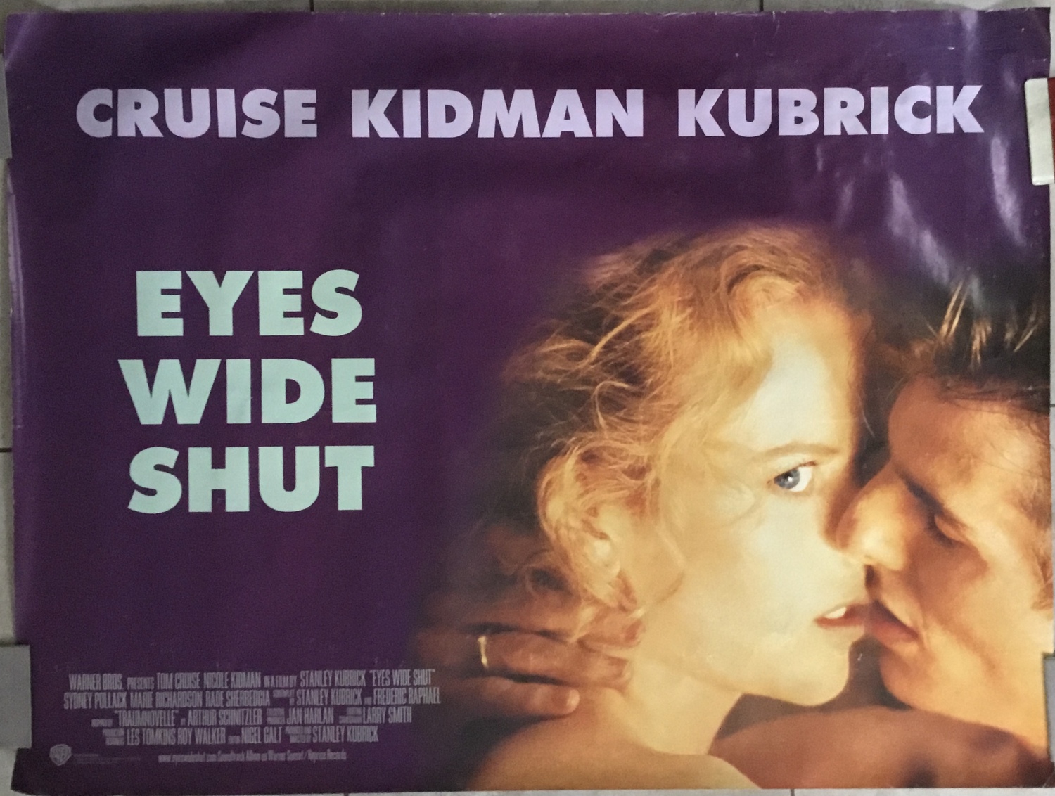 An original UK Quad Double Sided poster from the 1999 movie Eyes Wide Shut. The poster is in Good condition with some creasing to the outer edge due to rolling. The item was originally rolled but is now stored flat.