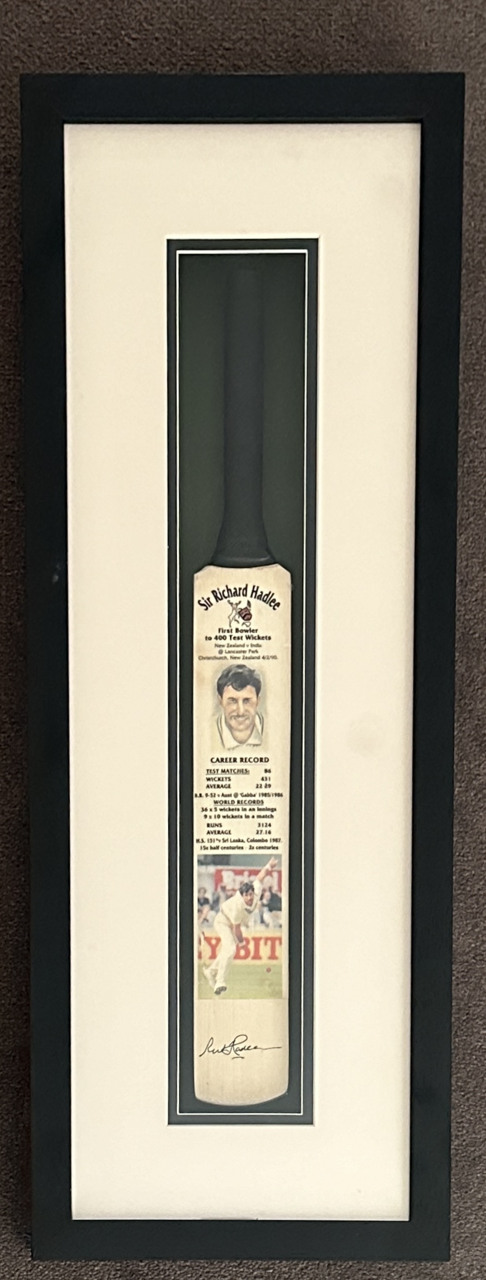 This Richard Hadlee Signed Cricket Bat is a tribute to one of cricket’s all-time greats. Personally signed by the legendary New Zealand all-rounder, the bat is a standout collectable that reflects Hadlee’s exceptional career and lasting impact on the game.