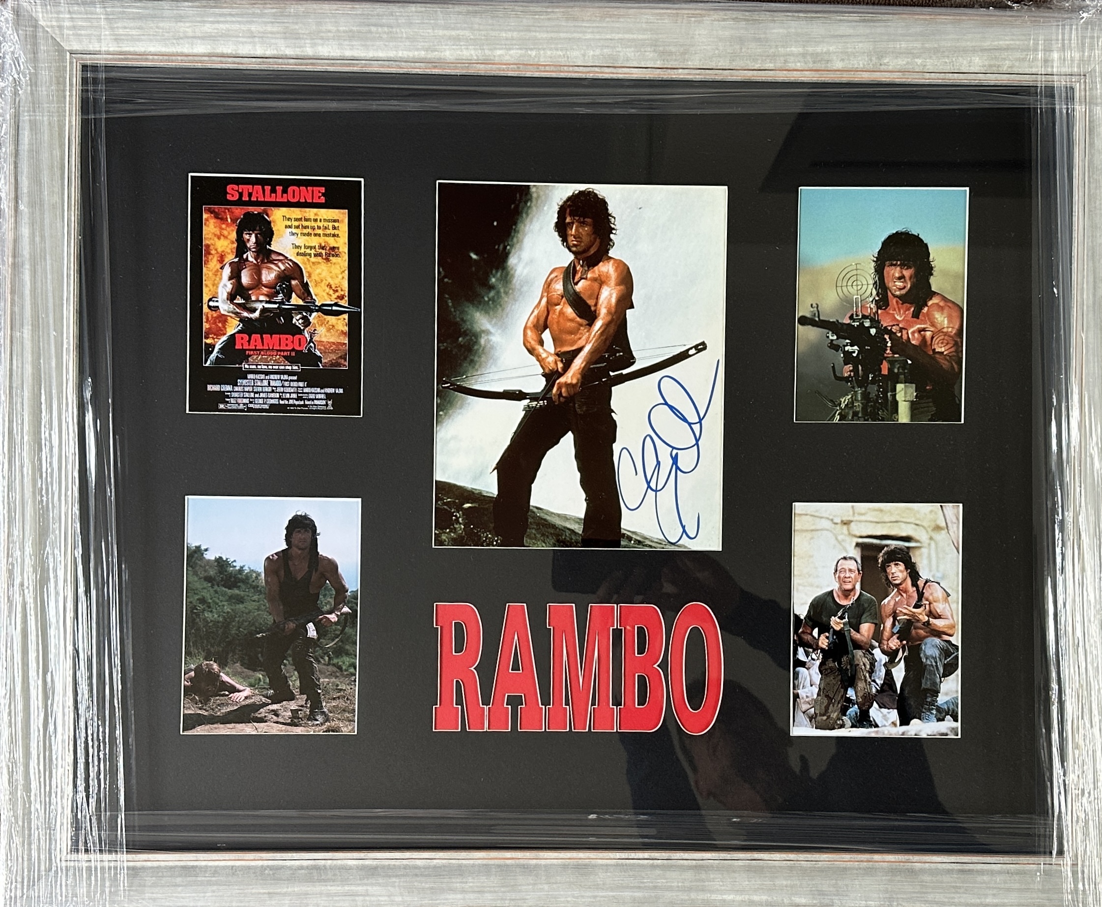 This Rambo Montage Signed by Sylvester Stallone features a collection of images from the iconic action film series, capturing key moments from Stallone’s legendary role as John Rambo. Signed by Stallone, this piece is a rare and highly sought-after item for film fans and collectors.