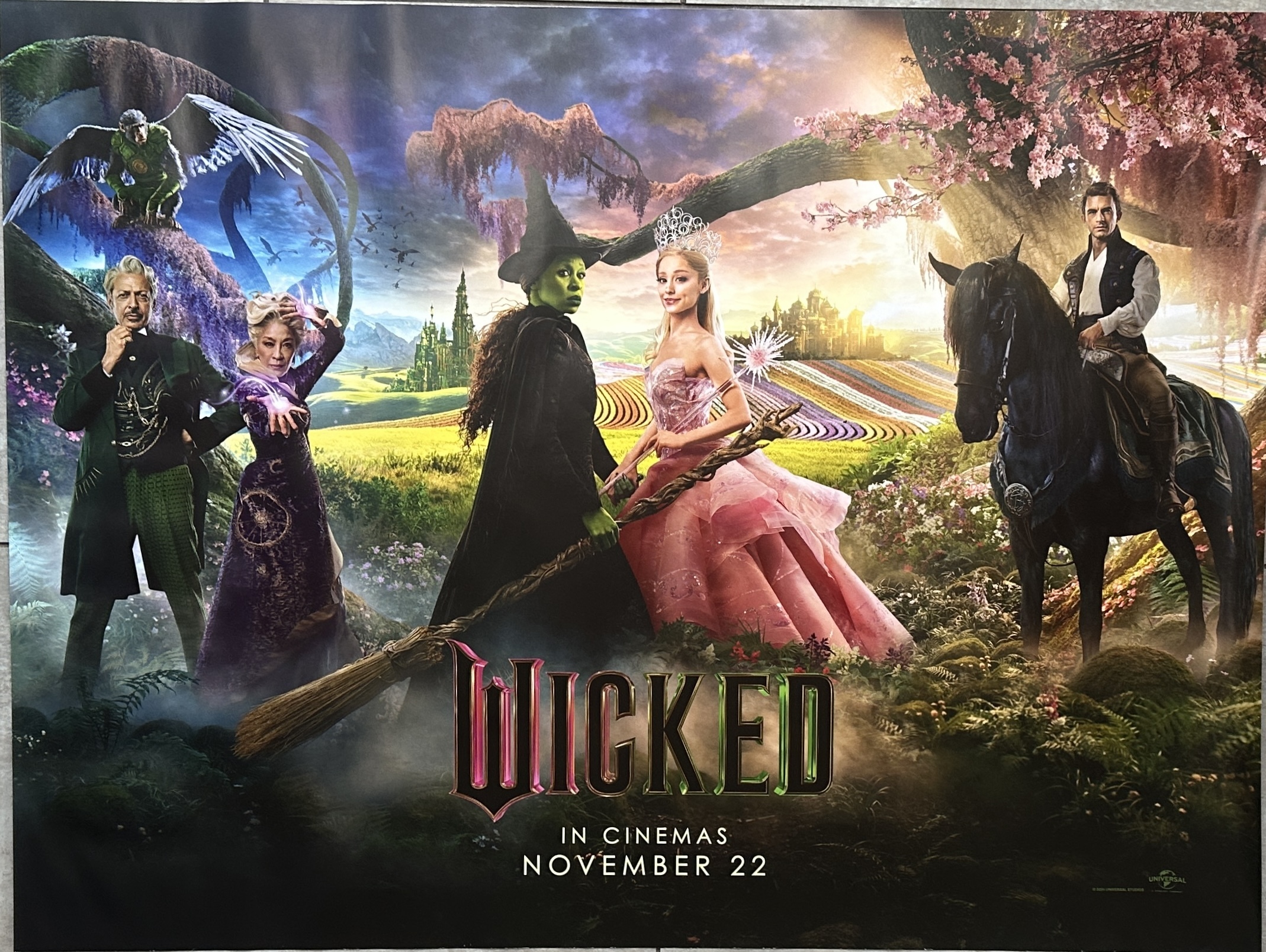 Wicked Movie UK Quad Poster starring Ariana Grande and Cynthia Erivo. This original UK double-sided Quad movie poster is in excellent condition and would look fantastic framed.