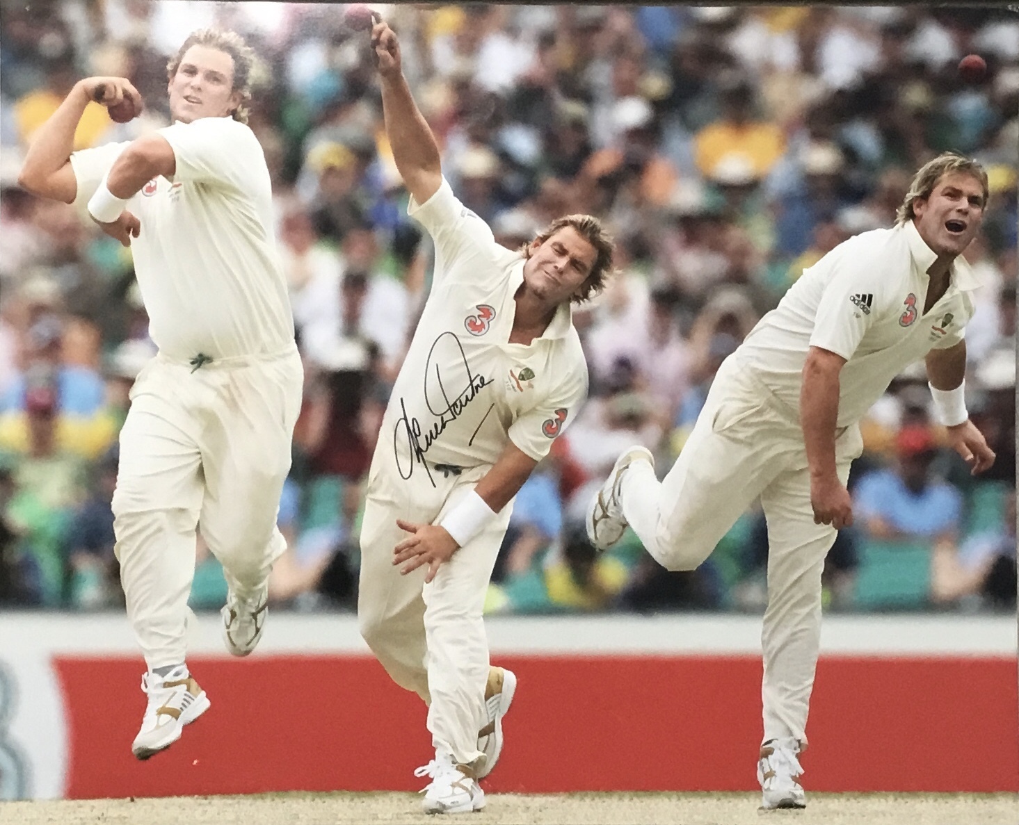A large colour hand signed print of Australian Cricket Legend Shane Warne.