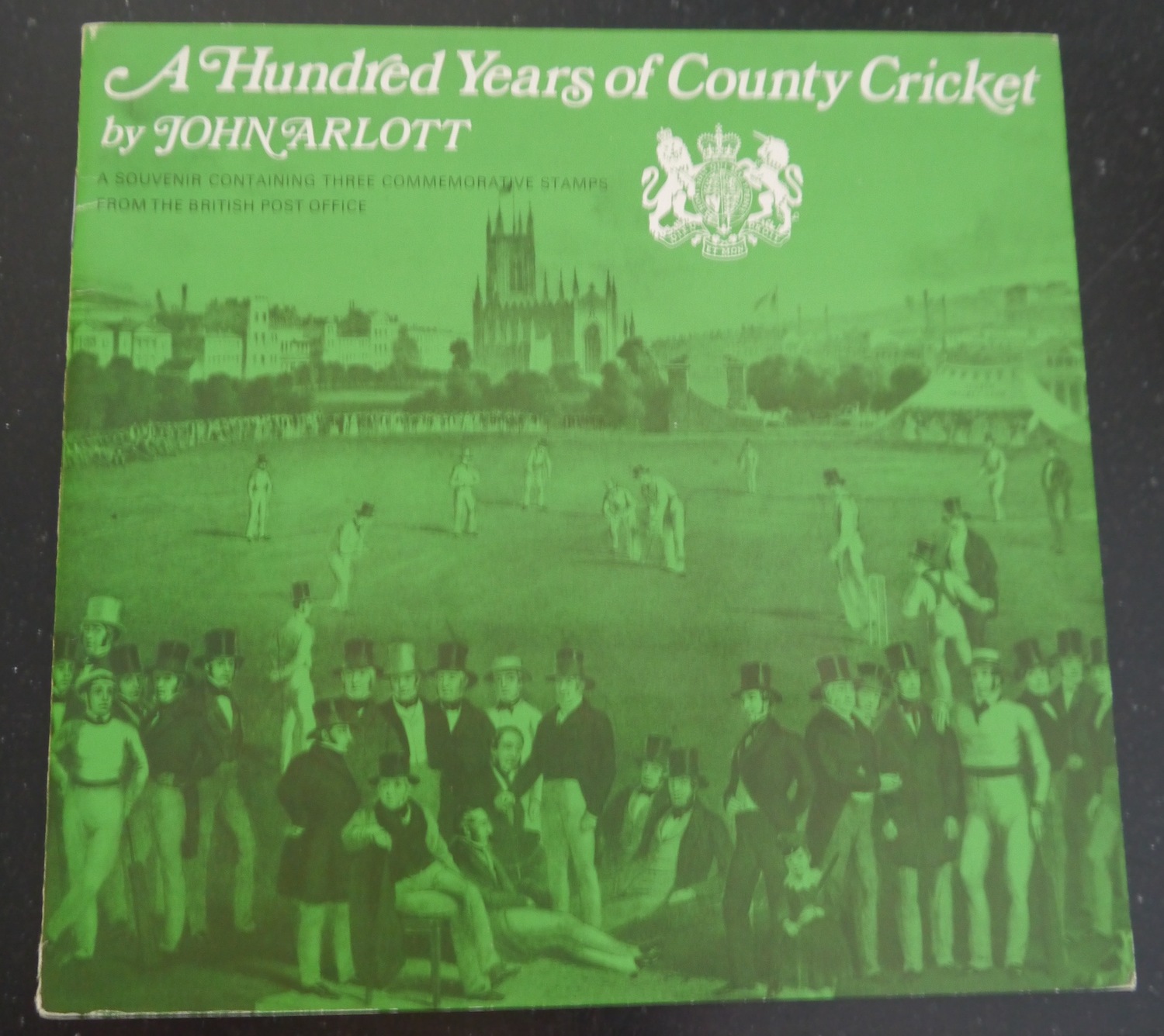 This commemorative souvenir booklet features three mint-condition stamps issued in 1973 to mark a century of county cricket. It is a special edition honouring John Arlott, the esteemed English journalist, author, and iconic BBC Test Match Special cricket commentator.