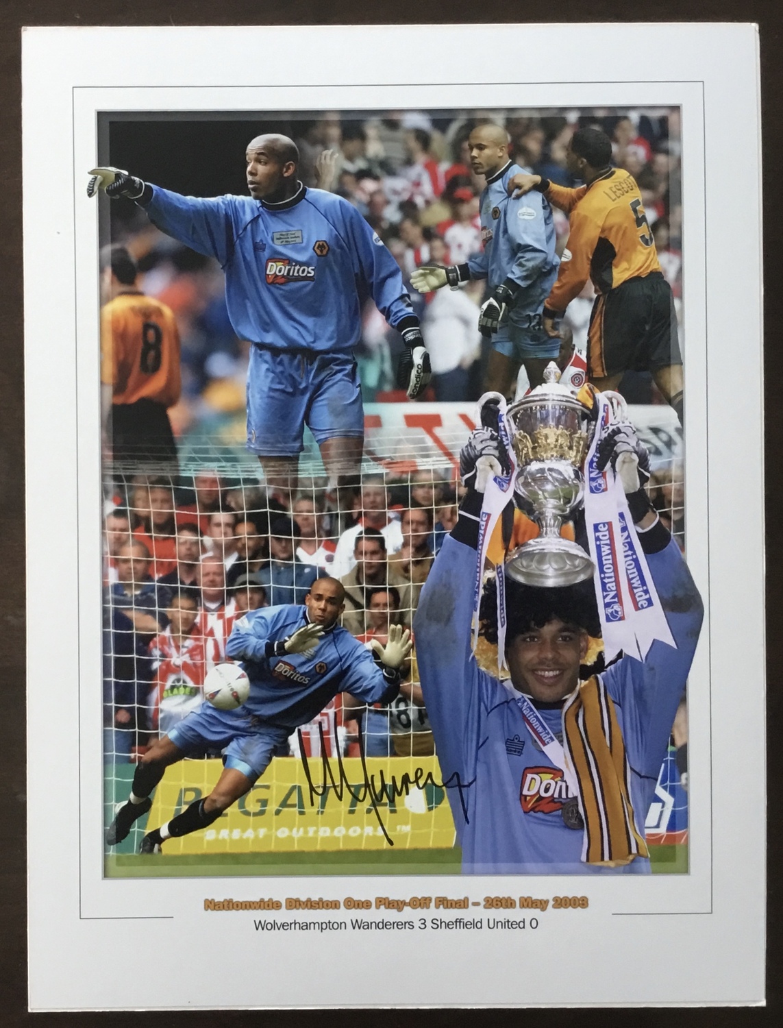 A hand signed Matt Murray montage playing for Wolverhampton Wanderers in the 3-0 victory over Sheffield United in the Nationwide Division One Play Off Final in May 2003