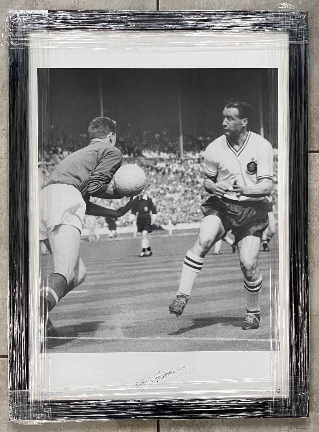 Nat Lofthouse blue tube edition hand signed print. The print is professionally framed and the price includes postage and packaging in the UK