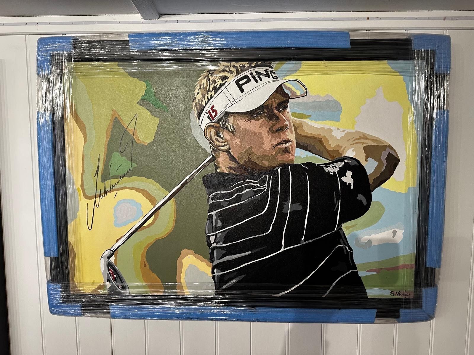 A signed limited edition print of Lee Westwood, one of golf’s most respected professionals and a Ryder Cup great, painted by Sue Verity. Using her bold and modern style, Sue captures Westwood’s presence with clarity and vibrancy.