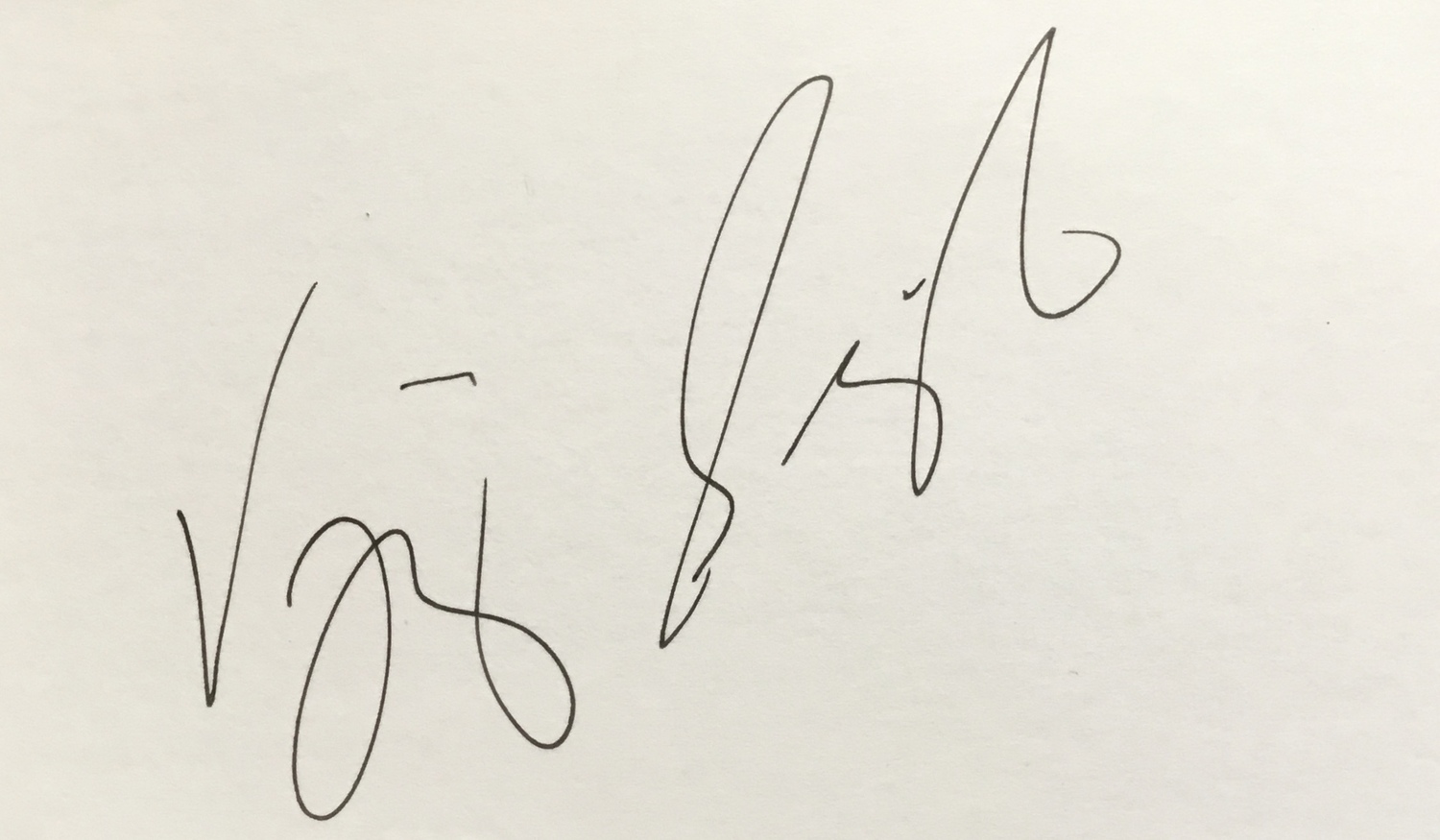 A hand signed card from formers Masters champion (2000) Vijay Singh who also won the PGA Championship in 1998 and 2004 and elected into the World Golf Hall of Fame in 2006.