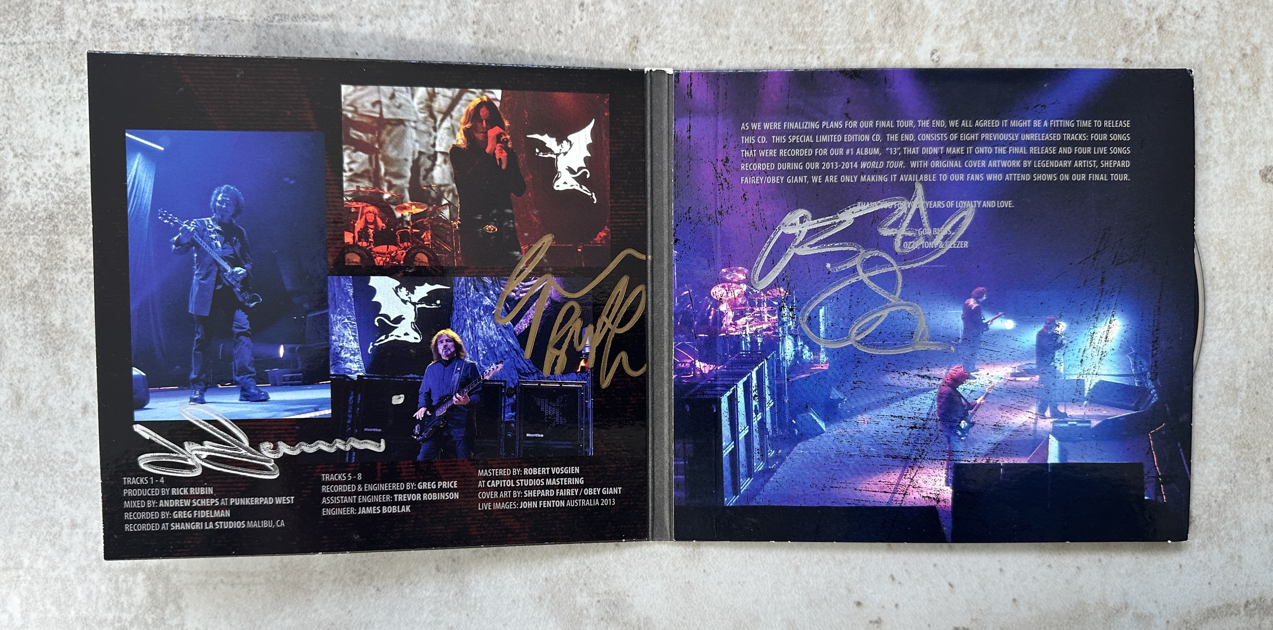Black Sabbath The End extended play CD was released on 20thJanuary 2016. The exclusive limited edition cd was only available for purchase at tour dates for their final tour. This was Black Sabbath’s final release as a band.