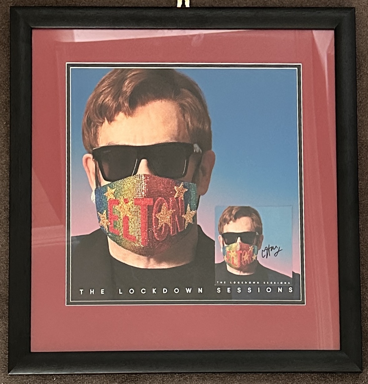 In October 2021 , Elton John released his 32nd studio album titled the Lockdown Sessions. The album featured artists Stevie Nicks and Stevie Wonder. The artwork has been hand signed and framed.