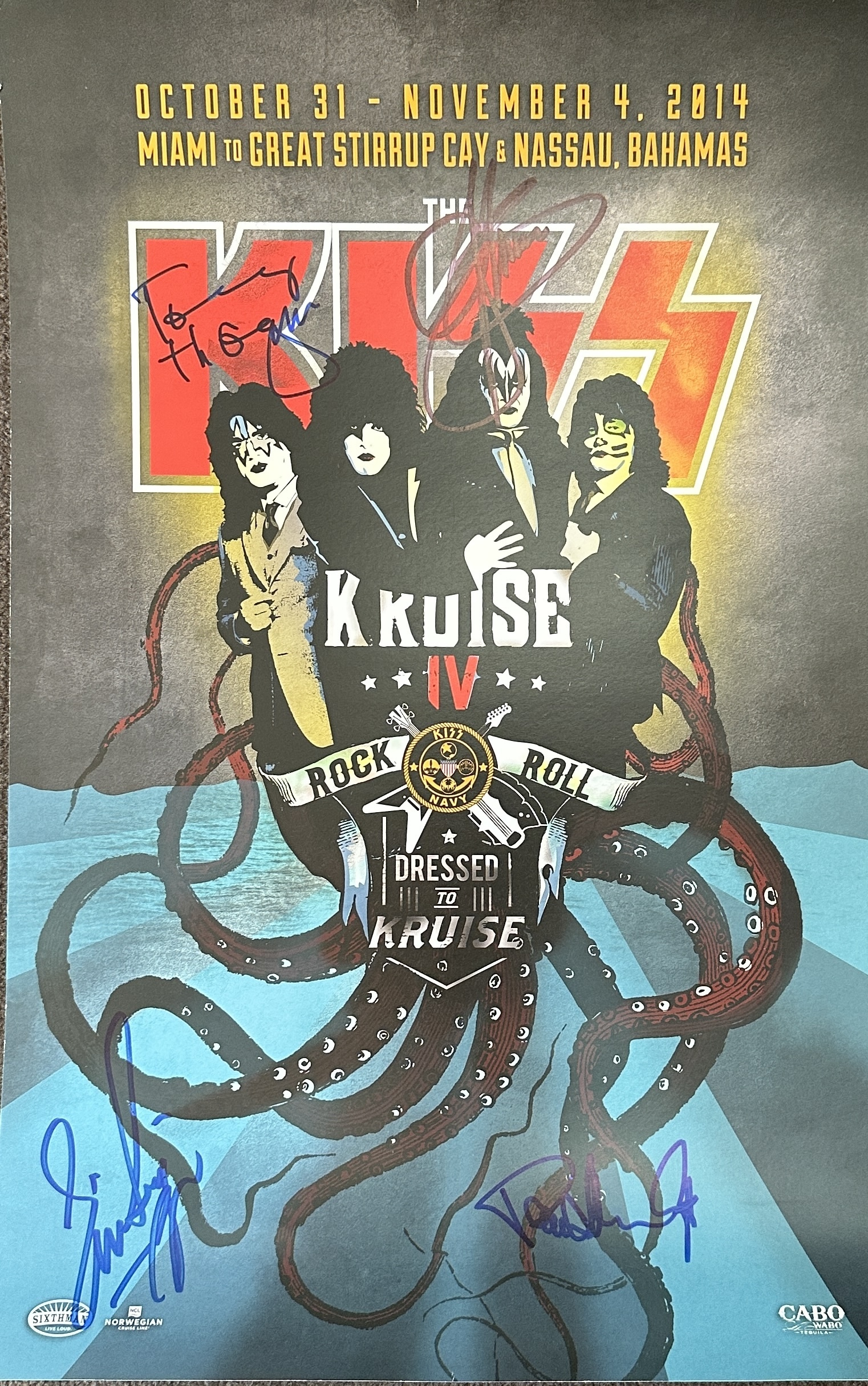Original poster from KISS’s 2014 concert, signed by the band. A genuine piece of rock memorabilia for any collection.