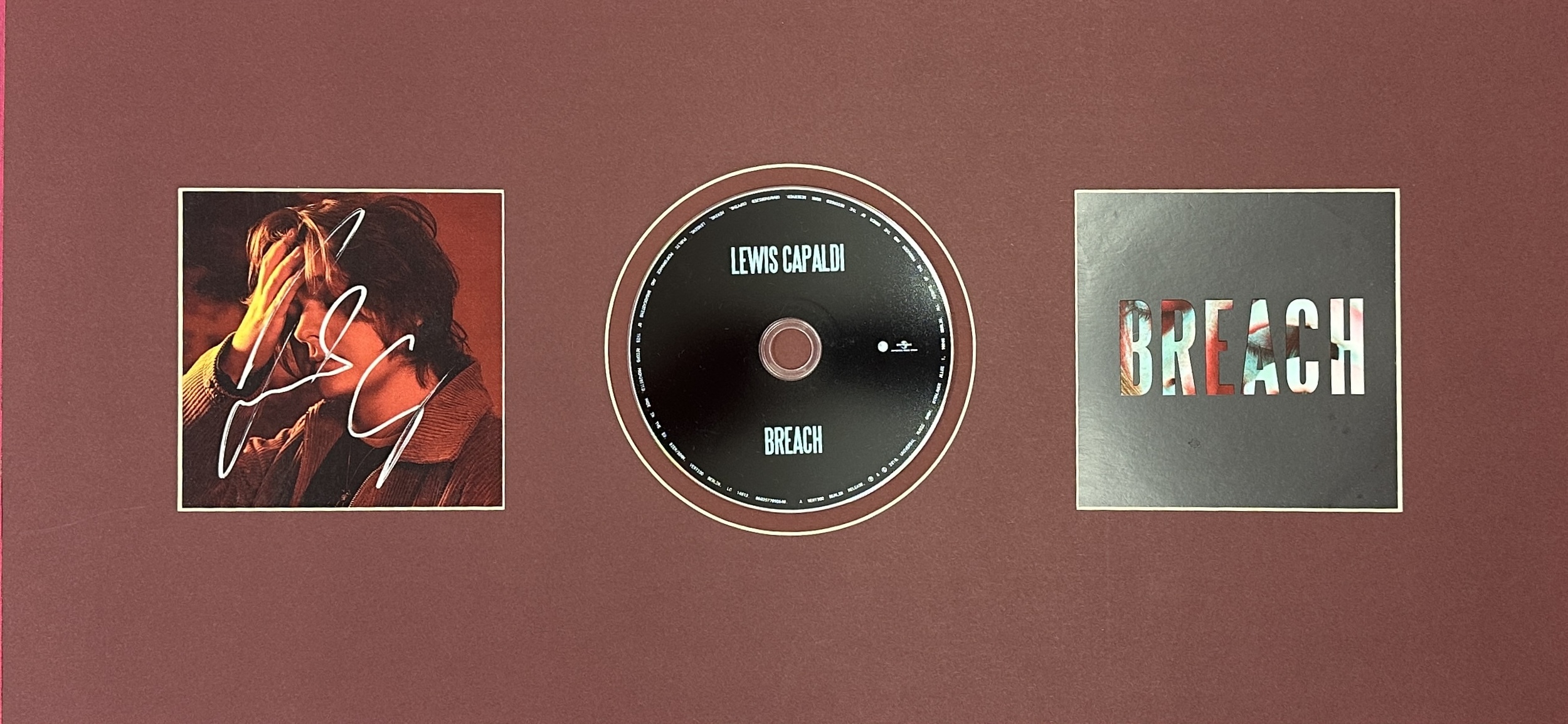 A hand signed copy of Lewis Capaldi’s extended play CD Breach. Released in 2018 it includes songs titled Tough, Grace and someone you loved. The hand signed artwork has been professionally framed and comes with a certificate of authenticity.