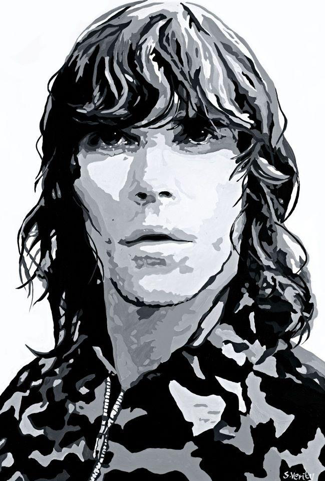 An original canvas portrait of Ian Brown, the influential frontman of The Stone Roses, painted by Sue Verity. With bold colour and her modern, minimalist style, Sue captures Brown’s distinctive presence and individuality. Signed by the artist, this unique painting is a striking addition to any music collection.