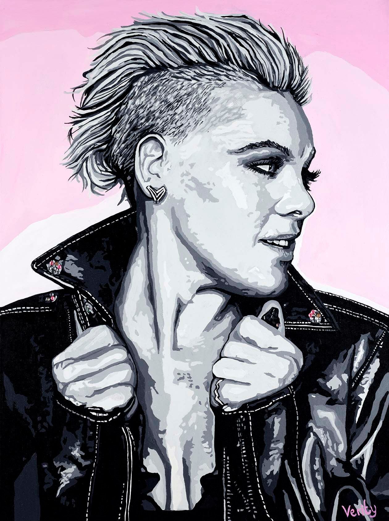 An original canvas portrait of Pink, the Grammy Award–winning singer and global superstar, painted by Sue Verity. With bold colour and her clean, modern style, Sue captures Pink’s energy and individuality. Signed by the artist, this unique painting is a vibrant addition to any collection.