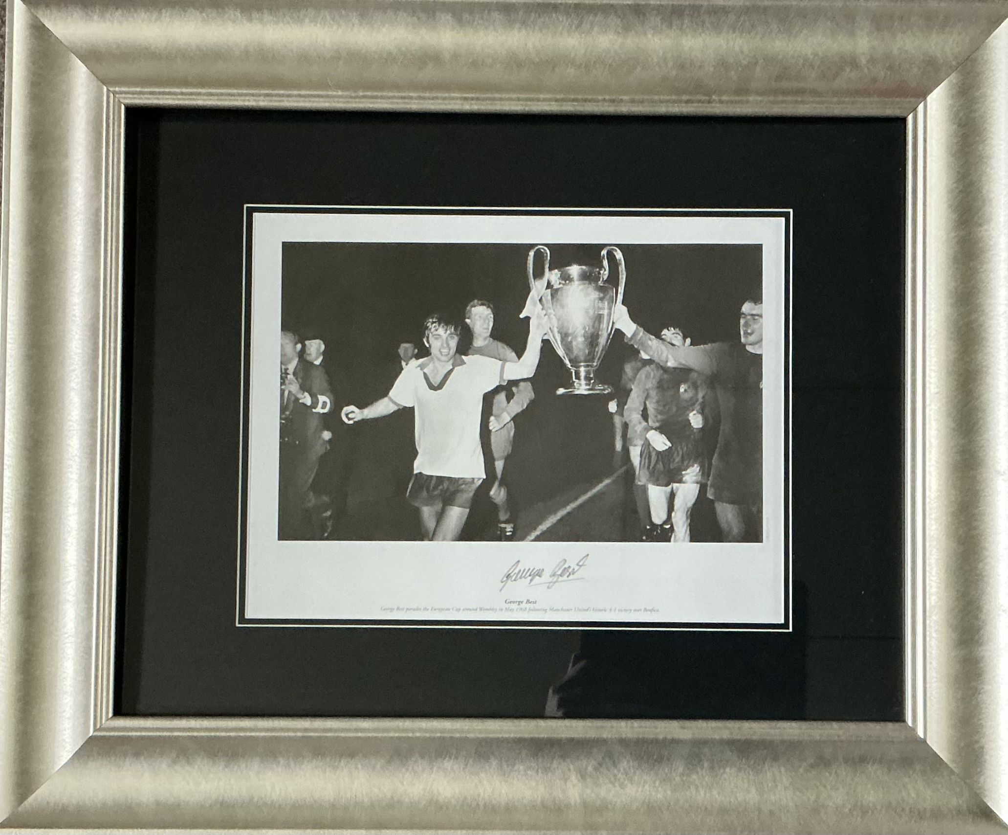 This signed photo features George Best during Manchester United’s 1968 European Cup-winning season.