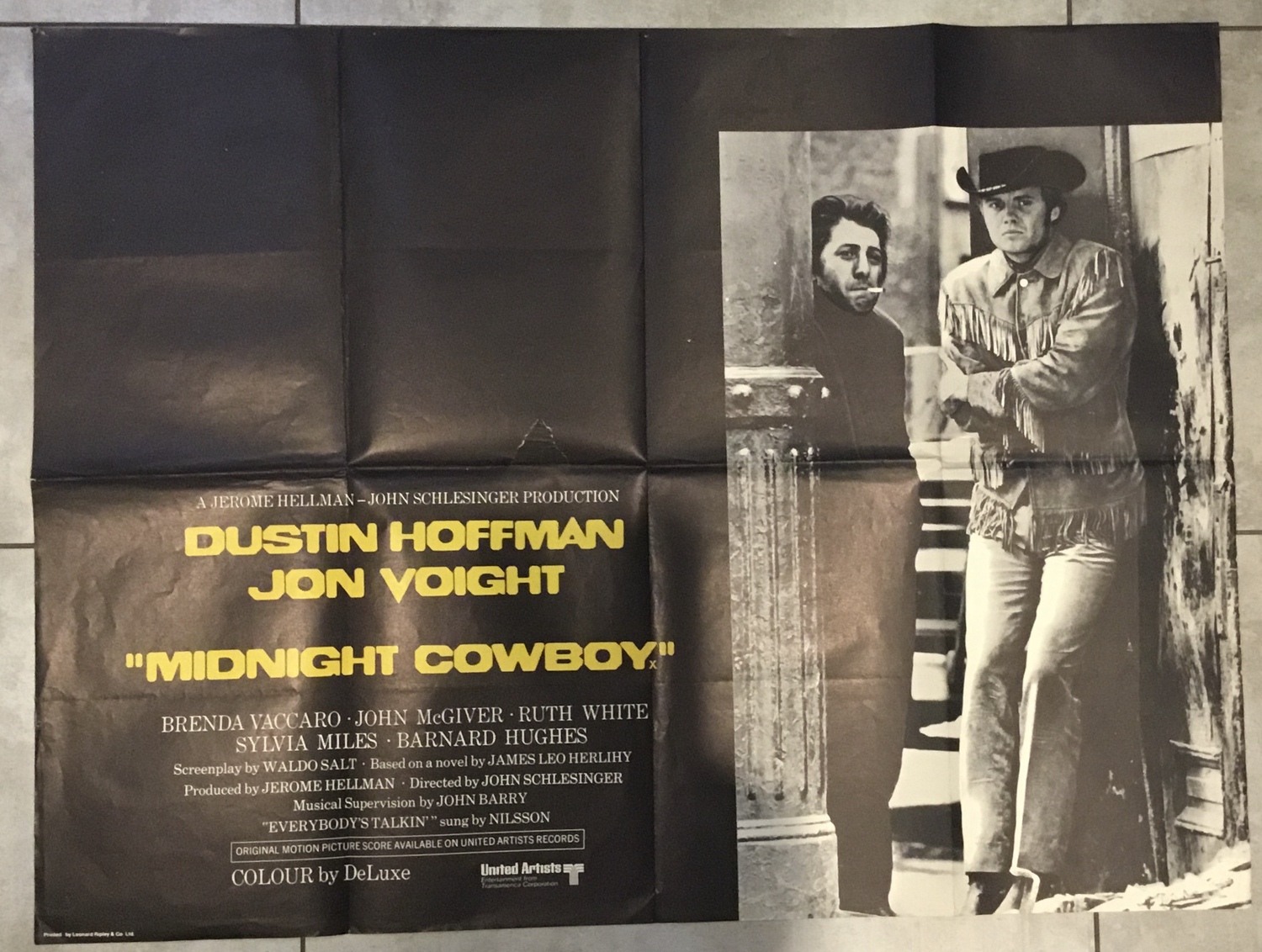 Midnight Cowboy 1969 original UK Quad Film Poster. The poster has a pin hole tear in the top left corner and a tear visible on the photograph in the centre of the poster. It is my intention to get this poster linen backed and repaired prior to any sale